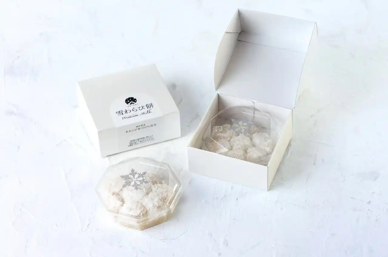雪のように白く、とろける口どけのミルクわらび餅 |