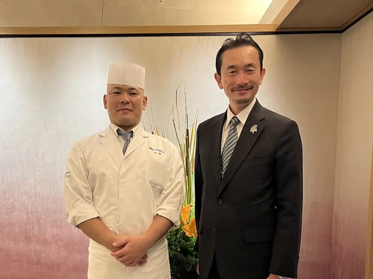 “はつはな”料理長 中條正人(左)と平川ワイナリー代表 平川敦雄氏(右) |