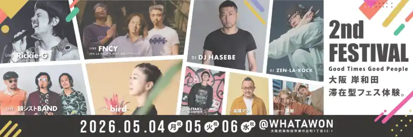ソウルフルな歌声と独創性に満ちた楽曲で、ジャンルを選ばず音楽ファンを魅了するシンガーソング・ライターとして紹介されており、WHATAWON公式でも2026年5月4日(月・祝)の2周年記念ライブ出演が案内されています。 |