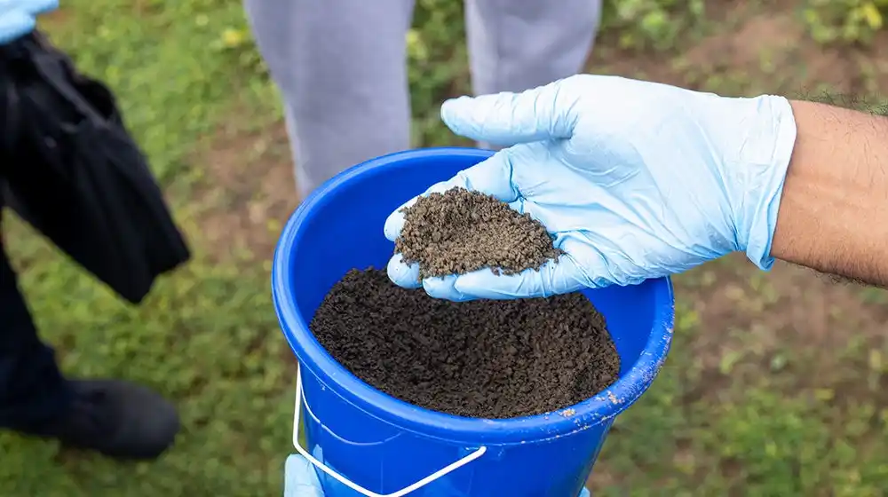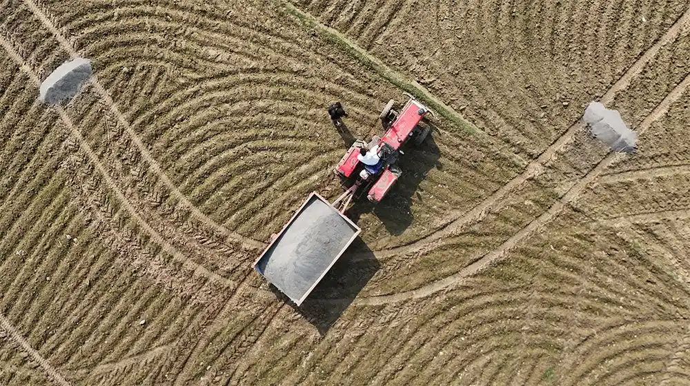 インド西ベンガル州の農地に散布される玄武岩粉末 |
