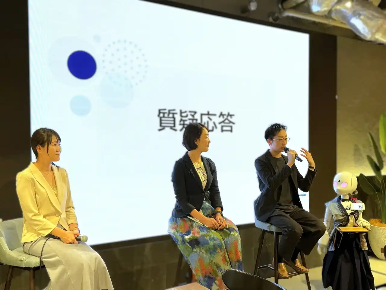 株式会社オリィ研究所(本社:東京都中央区、代表取締役:吉藤 健太朗・笹山 正浩、以下「オリィ研究所」)は、パナソニック株式会社(本社:東京都品川区、代表取締役 社長執行役員:豊嶋 明、以下「パナソニック」)と共同で、分身ロボットOriHimeを活用し、普段分身ロボットカフェで接客業務に従事する、移動困難な障害者人材が企業の業務に遠隔で参画する実証を2025年11月から3か月間行いました。この実証実験について、4月23日にパナソニックとのトークイベントを実施いたしました。 |