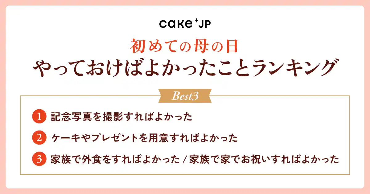 Cake.jpでは、この記念日を「ファースト母の日」として提案し、家族で新しい思い出を作るきっかけになることを目指しています。 |