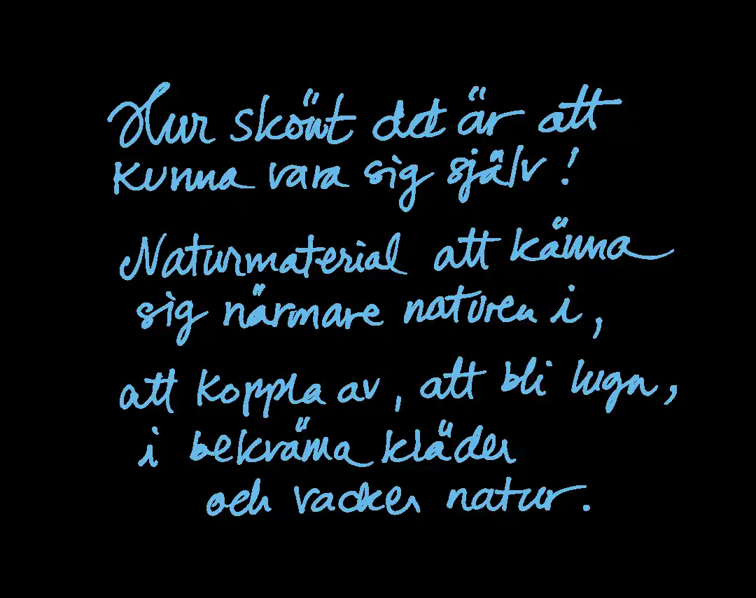 | リサの娘でありデザイナーのヨハンナが本企画のために描き下ろしたスウェーデン語のメッセージ入り。さらりとしたシルケット加工の綿100%素材です。 | |||||||||||||