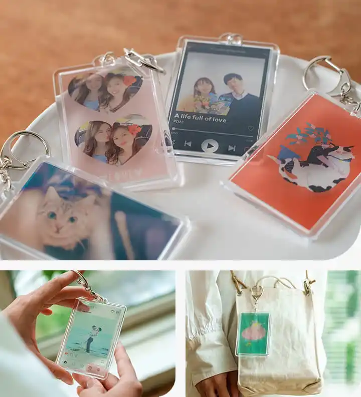 キーホルダーにしてお散歩バッグにつけたり、スマホケースに挟んだり…使い方は無限大! |