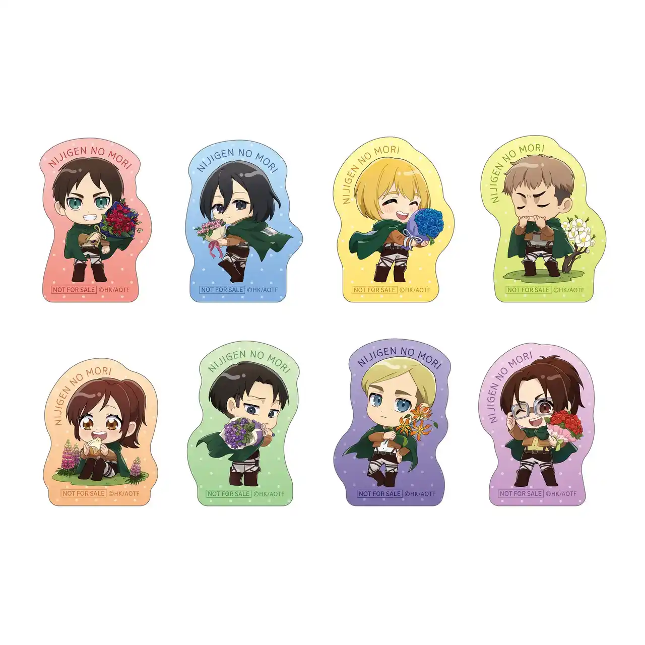 | 「進撃の巨人ミステリークエスト ニジゲンノモリ編/自宅編」それぞれの参加者にはオリジナルダイカットステッカー(全8種/ランダム)をプレゼントいたします。 | |||||||||||||||||||||