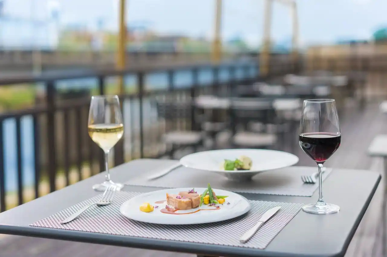 鮒鶴京都鴨川リゾートは、明治3年創業の料理旅館「鮒鶴」の歴史を受け継ぐ、築100年超の国登録有形文化財でレストランを運営しています。5月1日から10月15日までの夏季期間は鴨川の流れを間近に望む開放的なお席でお食事を楽しむ川床(かわゆか)と呼ばれるお席をレストランに併設します。鴨川沿いでも最大級の広さを誇る当館の川床は、年間約15,000人が訪れる京都屈指の夏の注目スポットとなっています。席間を十分にとり、京都の夏の風物詩である川床を、ゆったりとした空間でお過ごしいただけることも特徴です。 |