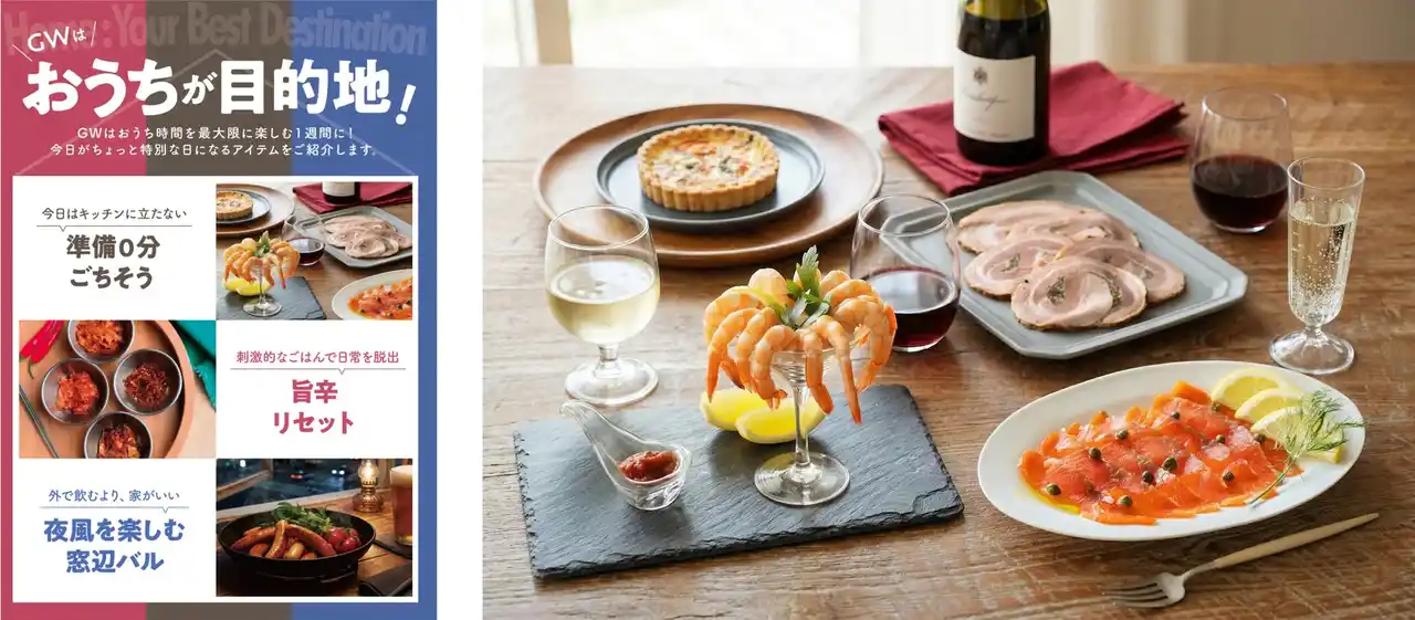 ■「GWはおうちが目的地!」各シーンと商品をご提案するガイド(リーフレット)の内容 |