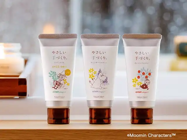 | 「MOOMIN yukiguni」は、北海道の「自然の美しさ」と、自然とともに生きる「誇り」を、ムーミンの世界観を通じて形にした北海道限定のレーベルです。ナチュラルアイランドからは、北海道の自然の中で楽しく生活するムーミンたちの姿がデザインされたコラボ製品が登場。入浴料と北海道の植物成分をたっぷり配合したハンドクリームが「MOOMIN yukiguni」の仲間入りを果たしました。 | |||||||