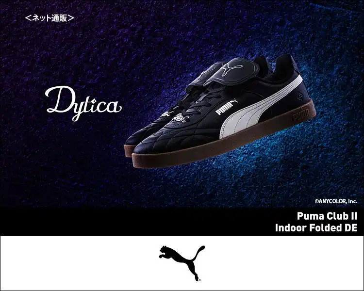 | PUMAのスニーカーモデル「Puma Club II Indoor Folded」をベースにコラボレーション仕様としてさりげなくDyticaのロゴやライバーのモチーフを配置。 | |||||||||