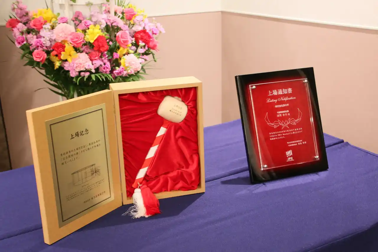 内容:代表挨拶、来賓祝辞、祝電披露、乾杯、IPOベルセレモニー、演奏、中締め |