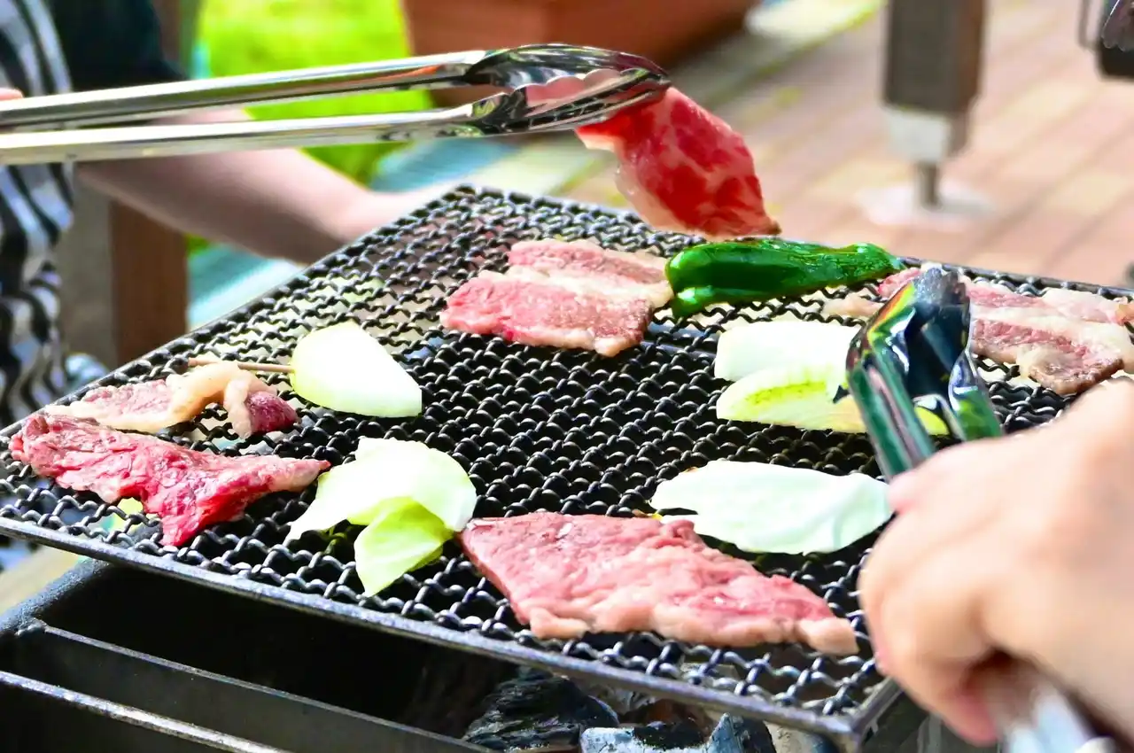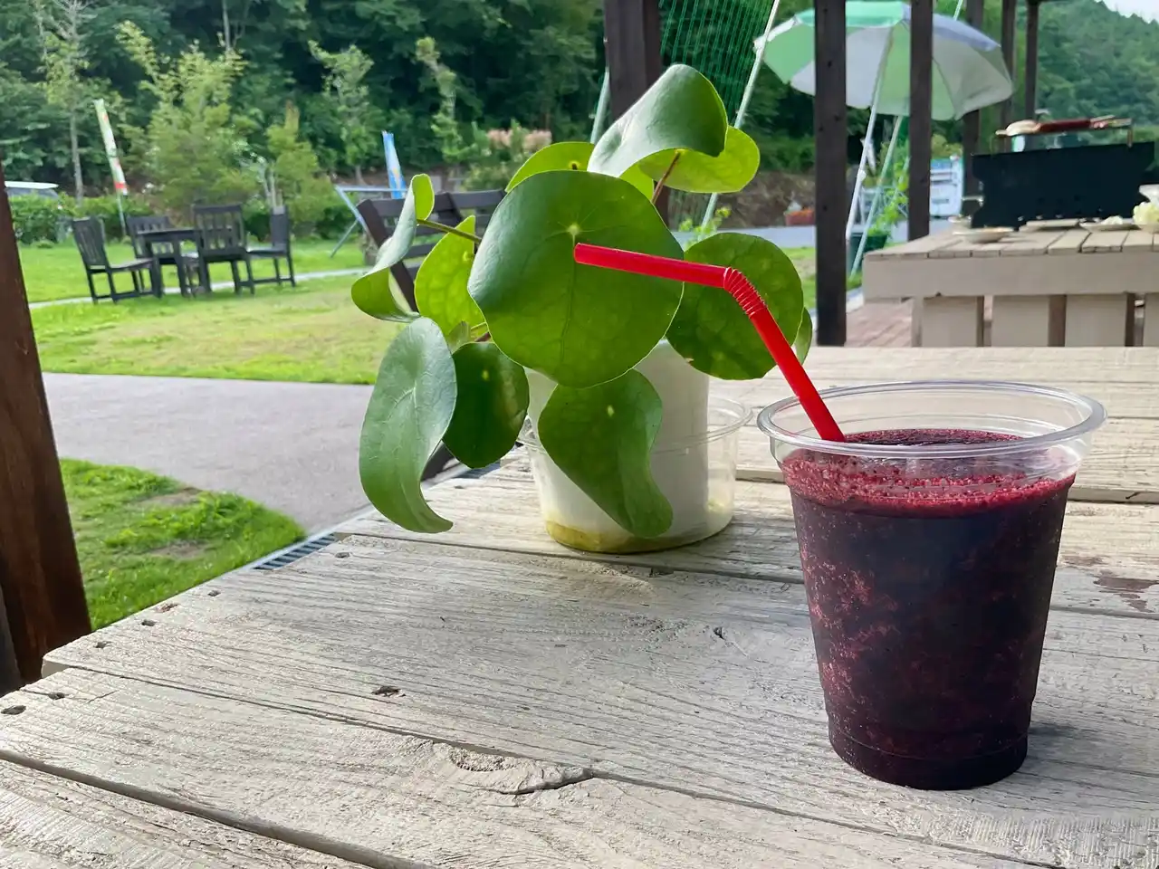 会場内にある「Manten Garden & cafe」では、音楽を聴きながら飲食を楽しむことができます。カレーやピザなどのランチメニュー、名物「ブルーベリージュース」などのドリンクメニュー、自家製ジェラートなどのデザートメニューがあるほか、手ぶらバーベキュー体験やピクニックテントのレンタルもできます。 |