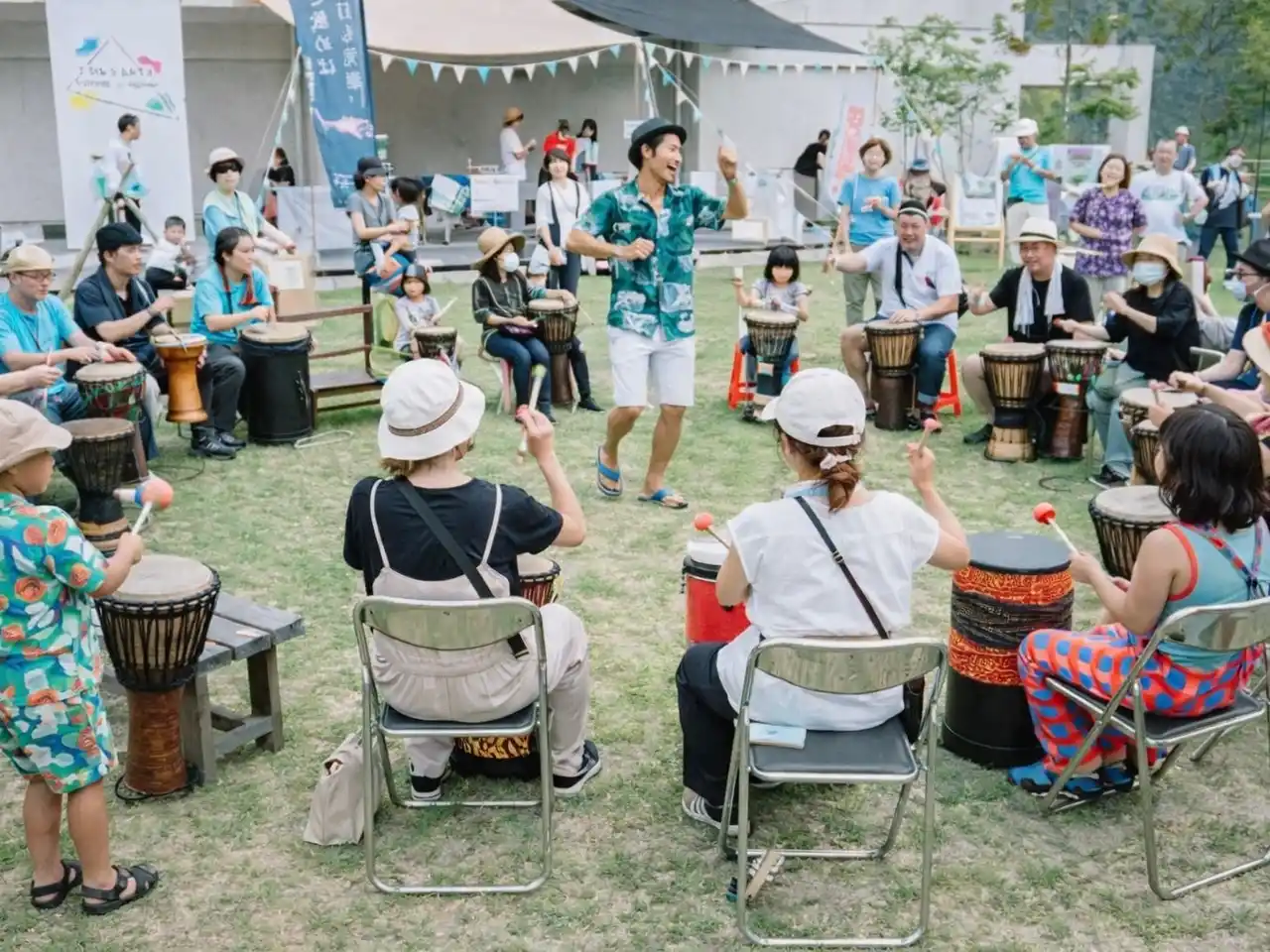 奈良県吉野を拠点にドラムサークルの活動を実施。お子様や障がいのある方など誰でも自由に演奏することができる参加型即興音楽「ドラムサークル」の体験企画。 |