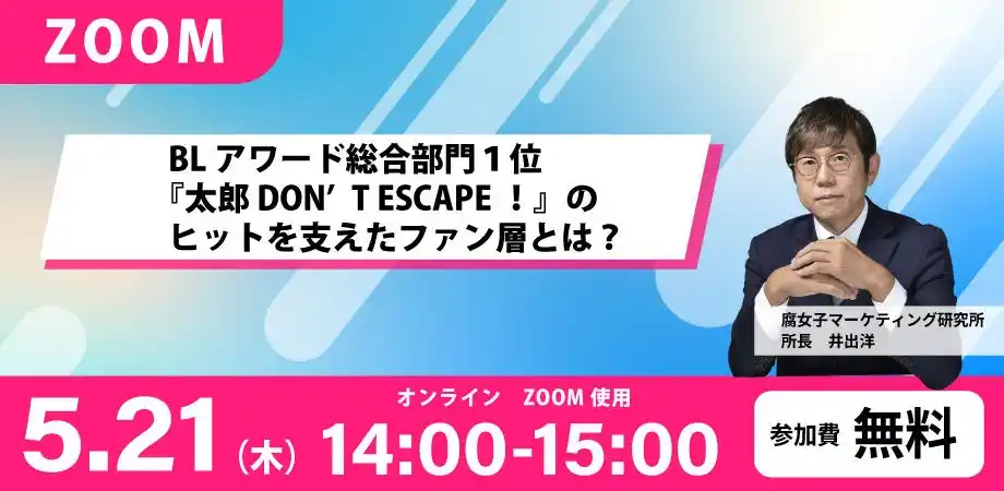 | テーマ:「BLアワード総合部門1位『太郎 DON’T ESCAPE!』のヒットを支えたファン層とは?」 | |||