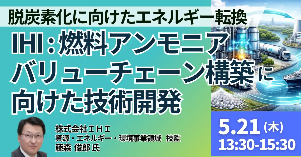 JPI(日本計画研究所)は、株式会社IHI 資源・エネルギー・環境事業領域 技監 藤森 俊郎 氏を招聘し、IHIにおける燃料アンモニアバリューチェーン構築に向けた技術開発および事業戦略について詳説いただくセミナーを開催します。 |