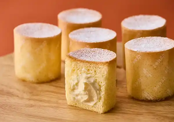 素材を極限まで泡立てることで実現したふわふわ生地に、カスタード×生クリームを配合した特製クリームを詰めて。 |