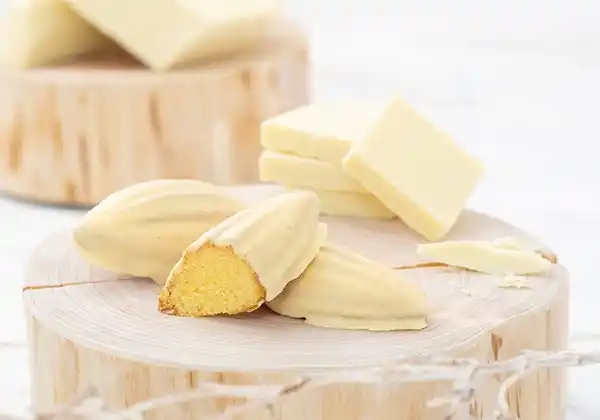 北海道産生クリームを練り込んだホワイトチョコレート生地を焼き上げ、ホワイトチョコレートソースを流し込みました。 |