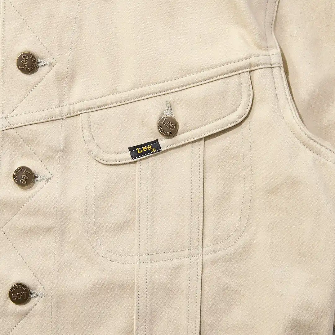「RIDERS 101-Z」を”WEST WEAVE”と呼ばれるサテン生地に置き換えた"100-Z"。斜めに取り付けられたフラップ付きの胸ポケットやフロントのステッチを踏襲。過渡期のみ見られる”Lee RIDERS”刻印のボタンと”黒タグ”が特徴的なディテール。 |