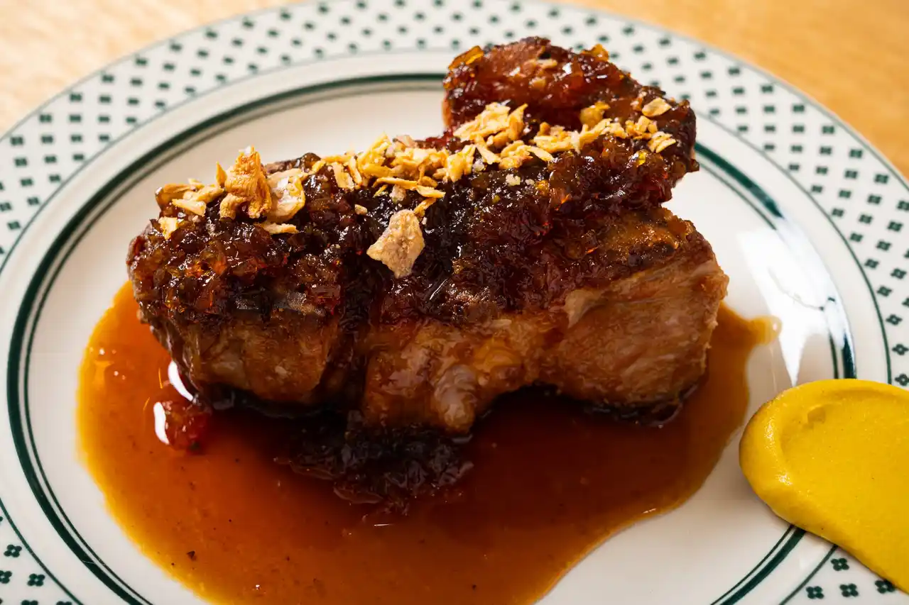 低温でじっくり火入れした豚肉は、驚くほどやわらかくジューシー。仕上げに香ばしく焼き上げ、コク深いタレをまとわせました。厚切りなのに軽やかに食べられる、酒場の新定番トンテキです。 |