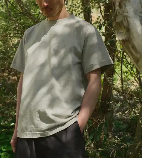 和歌山の吊り編み生地で、新たにショートスリーブを仕立てました。生地はロングスリーブとは異なる細番手の薄手素材。極上のやわらかさと美しい落ち感が特徴です。シンプルなデザインと繊細な縫製により、素材の良さを存分に引き出した一枚です。カラーはホワイト、ブラック、メランジグレーの3色。メランジグレーは杢糸ならではの奥行きある色味が魅力です。 |