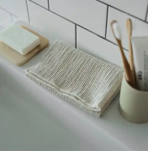 プロジェクトの起点となったのは、滋賀麻(しがあさ)が織りなすワッフル生地との出会いでした。日常で気兼ねなく使え、かつ機能的なバランスを備えた理想の一枚を目指し、工場とともに幾度も試作を重ねました。吸水速乾性を追求するなかで、麻100%では日常使いに課題があることが判明。そこで経糸に綿、緯糸にリネンを配した交織(こうしょく)へと辿り着きました。糸の太さを微調整し、試作を繰り返すことで生まれたのは、ふっくらとしながらも驚くほど軽い質感。ふかふかのタオルではなく、さっと拭けてすぐ乾く、暮らしに軽快に寄り添う道具を目指しました。 |