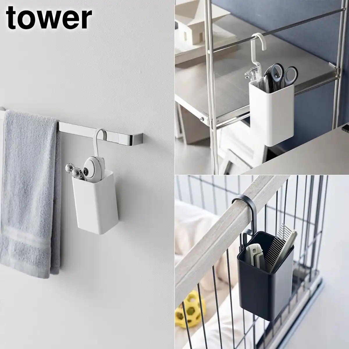 | 90度ずつ向きを変えて4方向に引っ掛けられる収納ケースです。 | |||