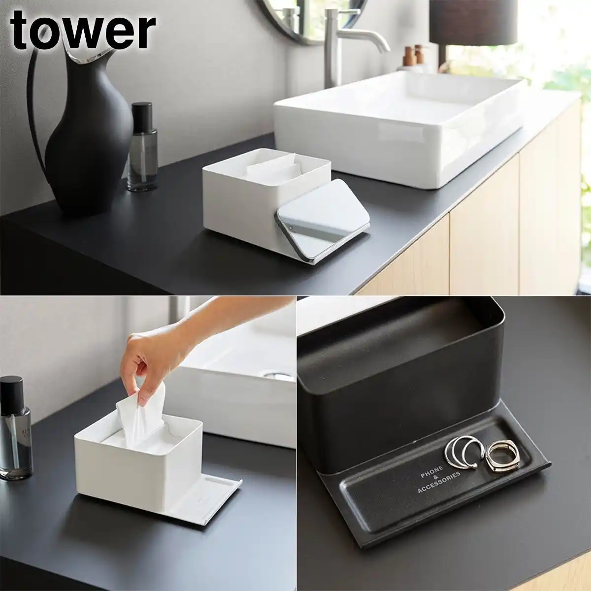 | 別売りのタワーシリーズと並べて配置すれば、洗面まわりをすっきり統一感のある空間に整えられます。 | |||