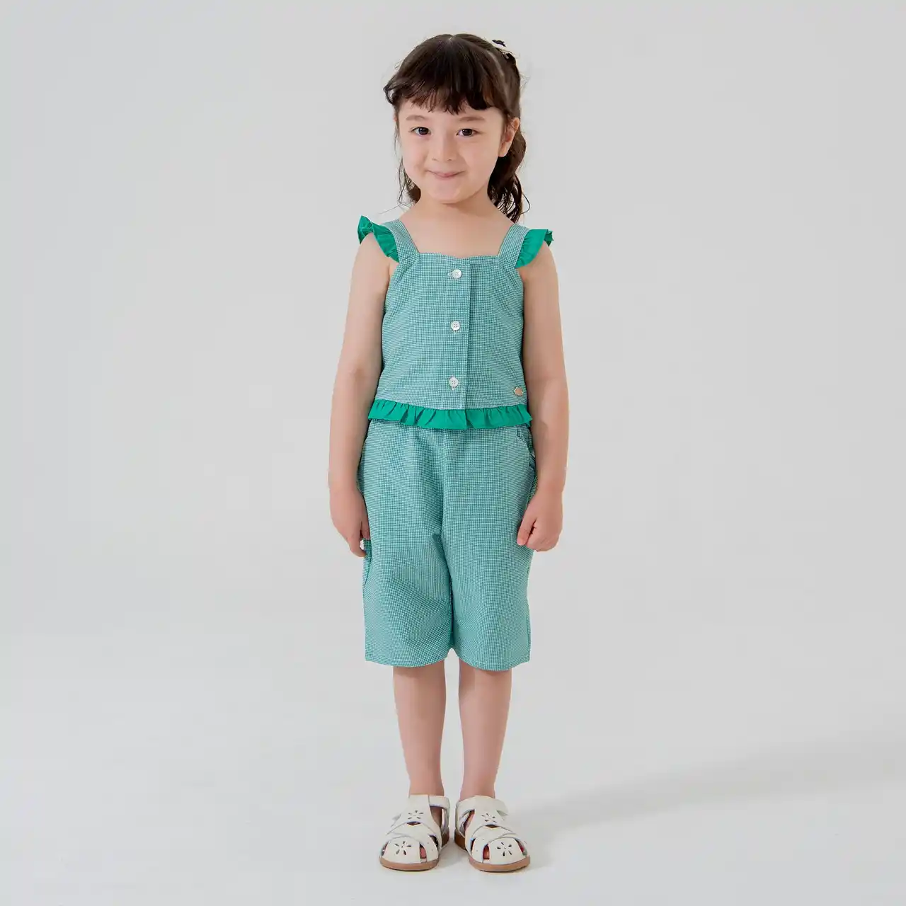■アイテム名:【プレミアム】【セットアップ】サッカーストレッチミニギンガムビスチェトップス&パンツ |