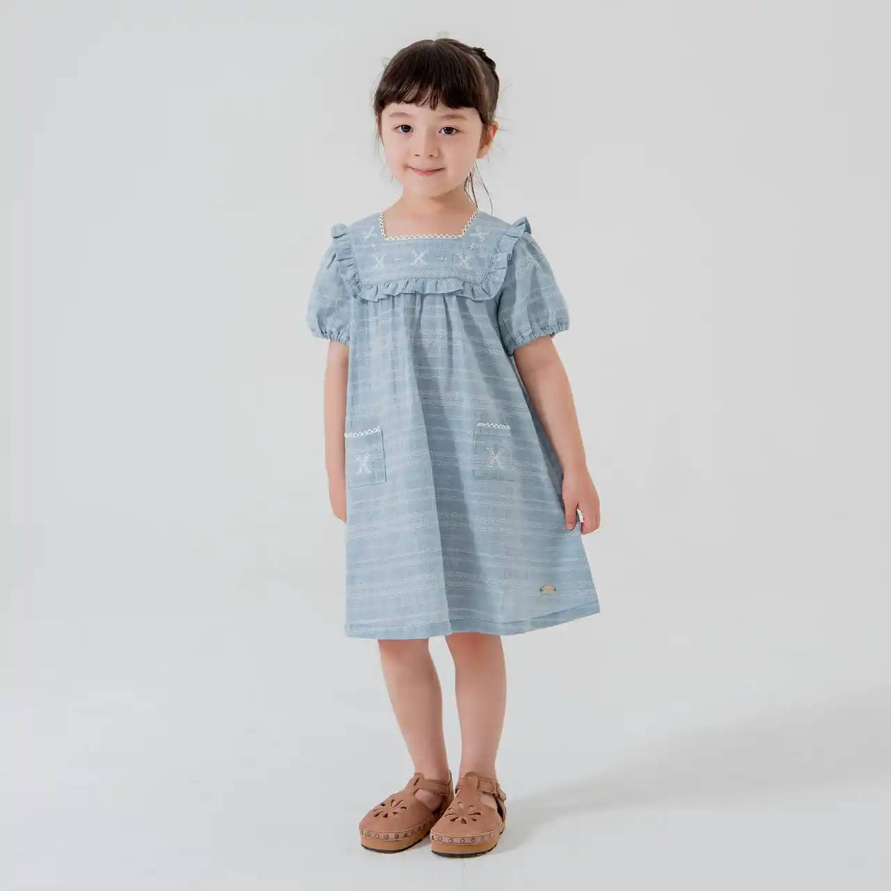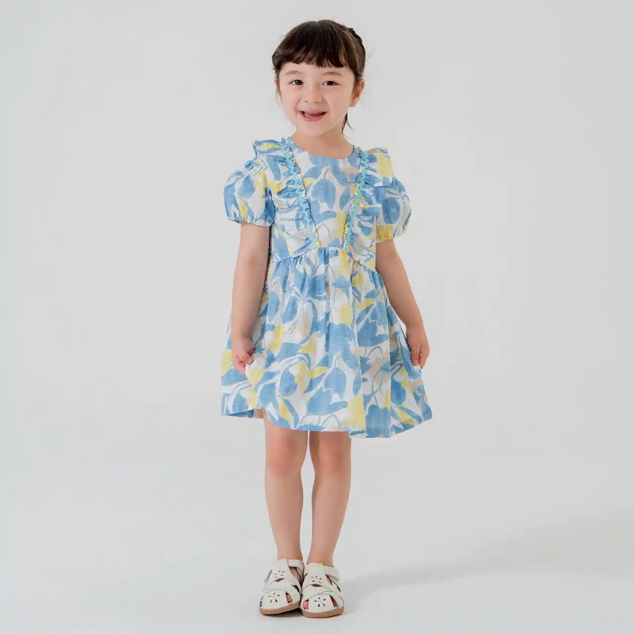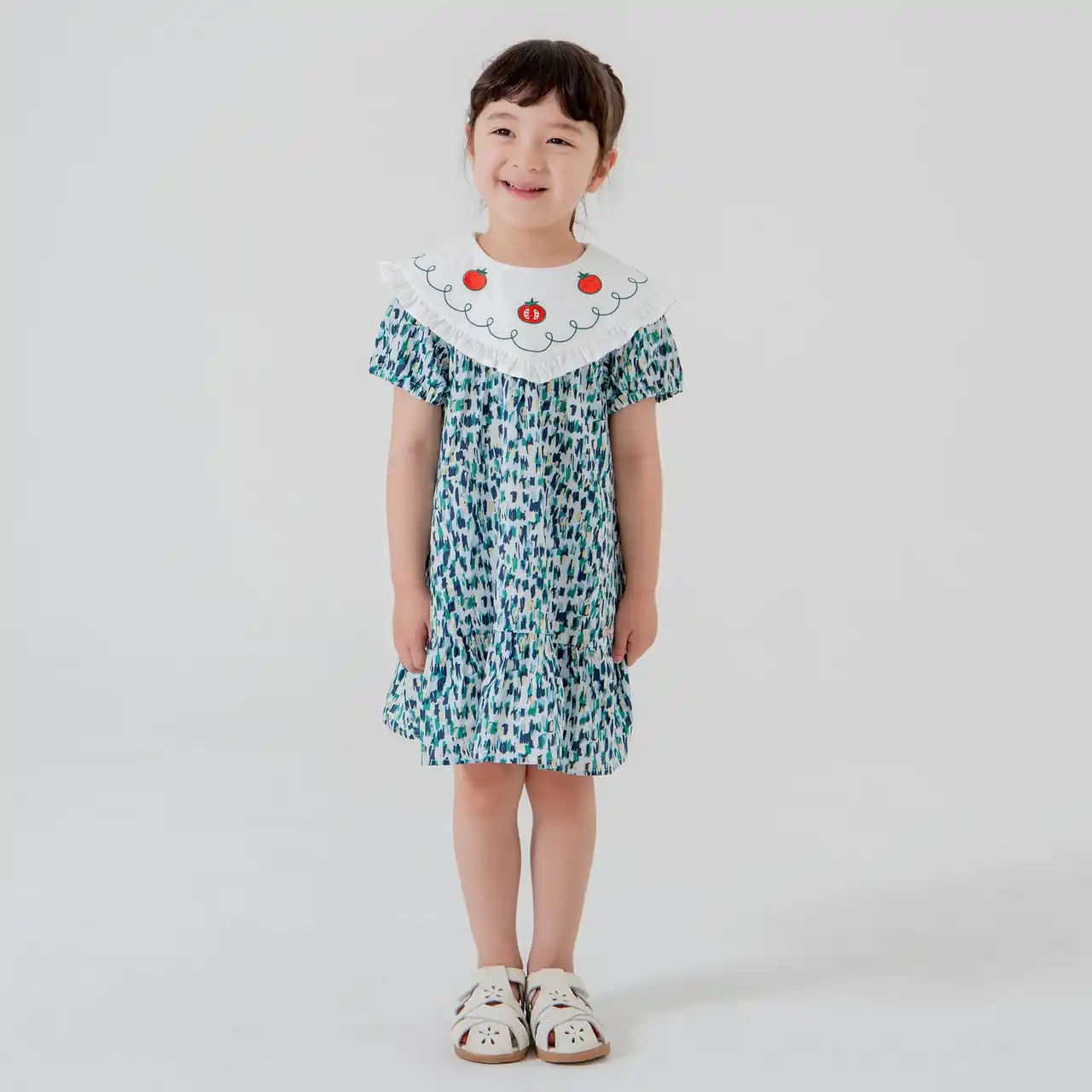 ■アイテム名:【プレミアム】フリルカラーローンプリント半袖ワンピース |