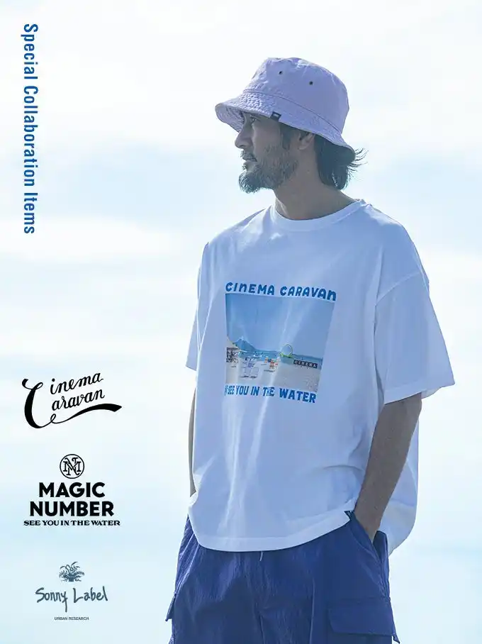 今シーズンのMAGIC NUMBERとURBAN RESEARCH Sonny Labelのコラボレーションアイテムは『Play with the Earth』をコンセプトとしたプロジェクトチーム「CINEMA CARAVAN」を迎え、トリプルコラボレーションが実現! 海、音楽、アート、スポーツ、環境問題など、多くの共通項と高い親和性を持つ3社ならではのコラボレーションアイテムが完成しました。 ラインナップ |