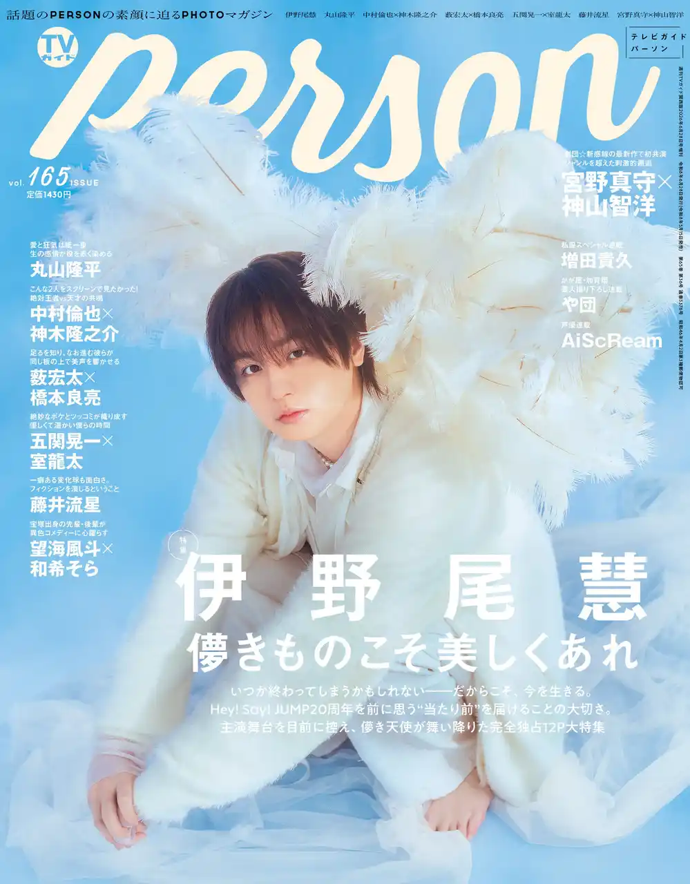 | 話題のPERSONの素顔に迫るPHOTOマガジン「TVガイドPERSON」。5月15日(金)に発売する最新号「vol.165」は、伊野尾慧が表紙、AiScReamが裏表紙を飾る。 | |||||||||||||||||||