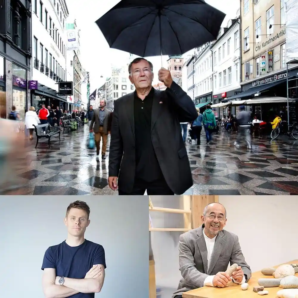 「都市と循環2026」のキーノートスピーチにご登壇くださる方々。(上)デンマークの建築家、ヤン・ゲール氏。(左下)「WikiHouse」を牽引するOpen Systems Lab共同創設者、アラステア・パーヴィン氏。(右下)アーティスト・グループ「dumb type」の創設メンバーの一人で現在、京都市立芸術大学理事長・学長の小山田徹氏 |