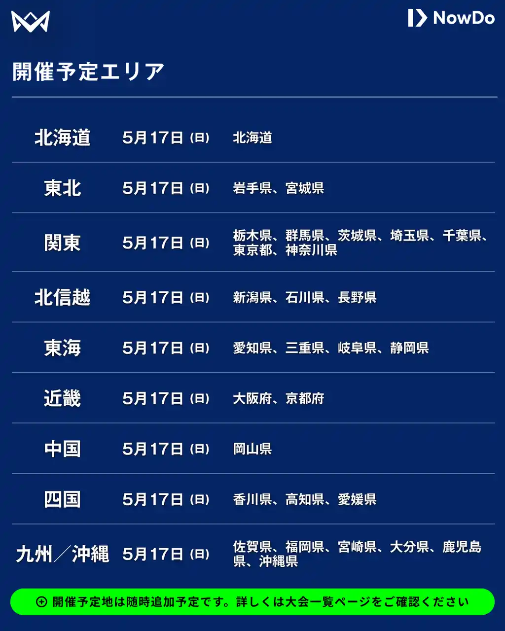 ※画像の掲載されている開催予定エリアは4月24日(金)時点となり、大会は随時追加予定です。 |