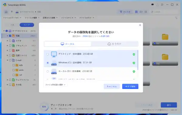 最も手軽で成功率が高いのが、専用のデータ復元ソフト(Tenorshare 4DDiGなど)を使用する方法です。