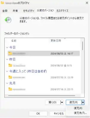■ 方法②:以前のバージョンやバックアップから確認