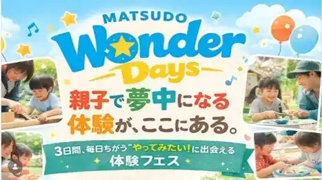 親子で「発見・驚き・体験」を楽しむ3日間の祭典「松戸ワンダーデイズ」を開催!“Wonder(驚き)”を軸に、27以上のワークショップや、DJ酒井道代氏を迎えた「キッズパーソナリティー体験~市長にインタビュー!~」など、ワクワクする企画が盛りだくさんです。聖徳大学や市民・企業が連携して創る、松戸の魅力を再発見できる充実の3日間へ、ぜひお越しください。 |