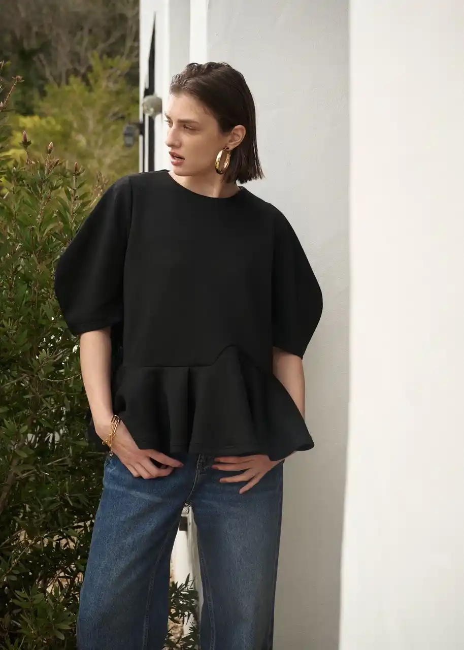 気になる二の腕や肩の厚みはカバーしつつ、デコルテを綺麗に見せながら華奢見えも叶えるBig Collar Strap Pullover(写真左)、立体的なシルエットで一枚でパッと華やかに見せてくれ、ワンツーコーデがグッとランクアップするPuff Sleeve Peplum Pullover(写真右)など、大人ならではの体型悩みに寄り添いつつ袖を通すだけで気持ちが明るくなるようなトップスが揃う。 |