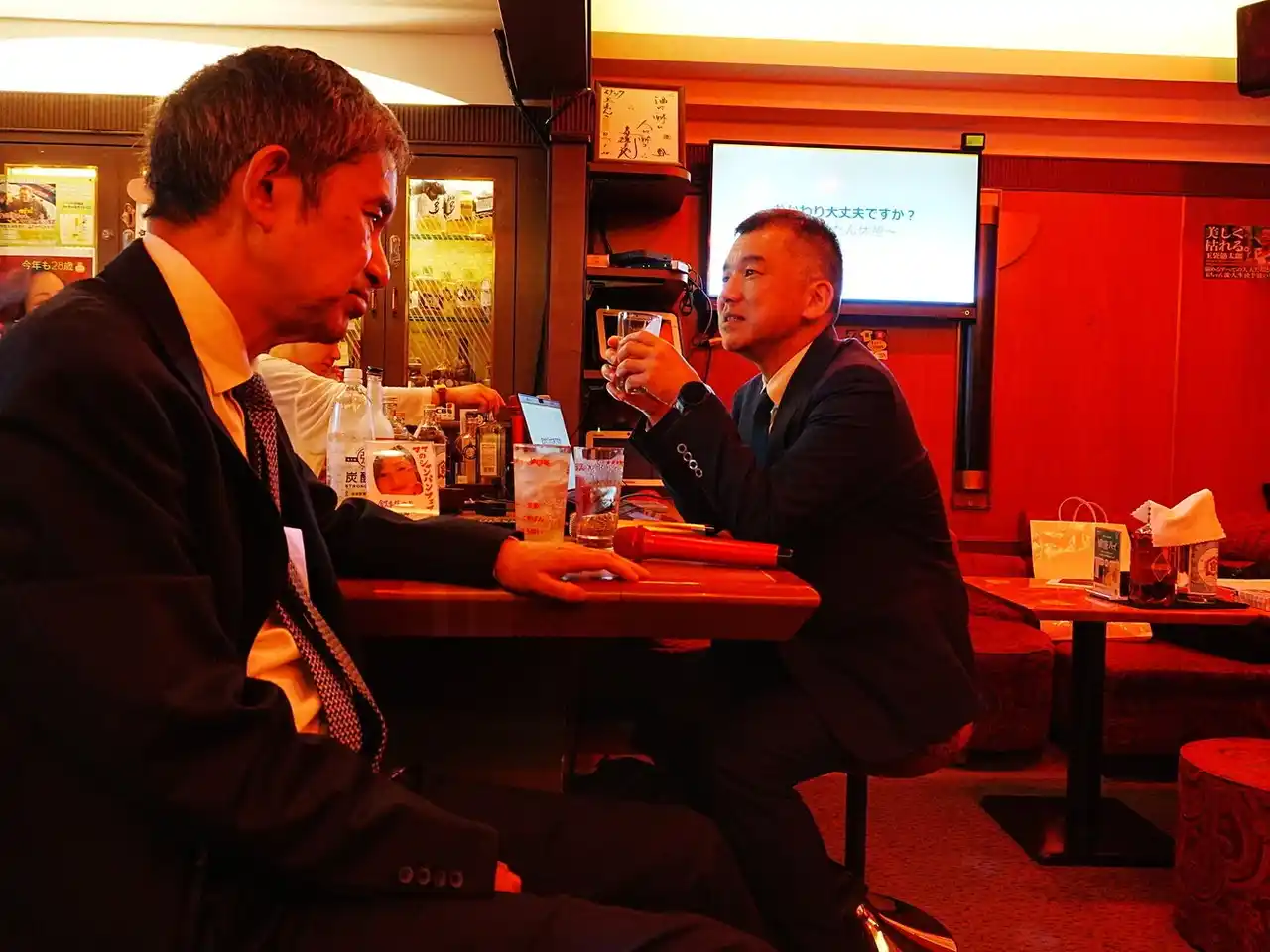 プロフェッショナル人材の流動化を通じて地方創生を推進する、株式会社プロ人材機構(本社:東京都中央区、代表取締役:高橋啓)は、2026年4月23日(木)、株式会社矢野経済研究所との共同特別企画『スナックヤノケイ』をスナック玉ちゃん赤坂本店にて開催いたしました。定年を控えた、あるいは定年を迎えたエグゼクティブ層が集い、シニア世代のキャリアのリアルと「プロ人材」としての新たな可能性について、スナックという社交場特有の熱気の中で本音をぶつけ合いました。 |