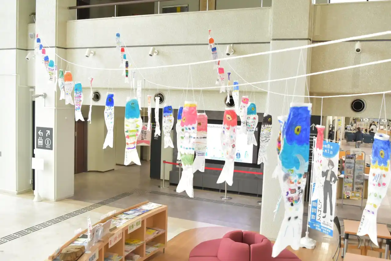 鯉のぼりは、竜神ダム上空(竜神大吊橋と2列に並行)に約500匹、竜神大吊橋周辺や道の駅ひたちおおた沿道などに約500匹が展示され、合計約1,000匹が群泳します。また、市内の幼稚園、保育所、認定こども園等に通う園児や特別支援学校の児童・生徒が制作したミニ鯉のぼりを、水府物産センター・竜神カフェ・図書館・道の駅ひたちおおた・市役所1階ロビーに展示いたします。新緑の中を優雅に泳ぐ鯉のぼりは美しく、大きな迫力があります。 |