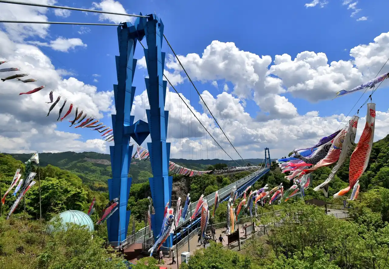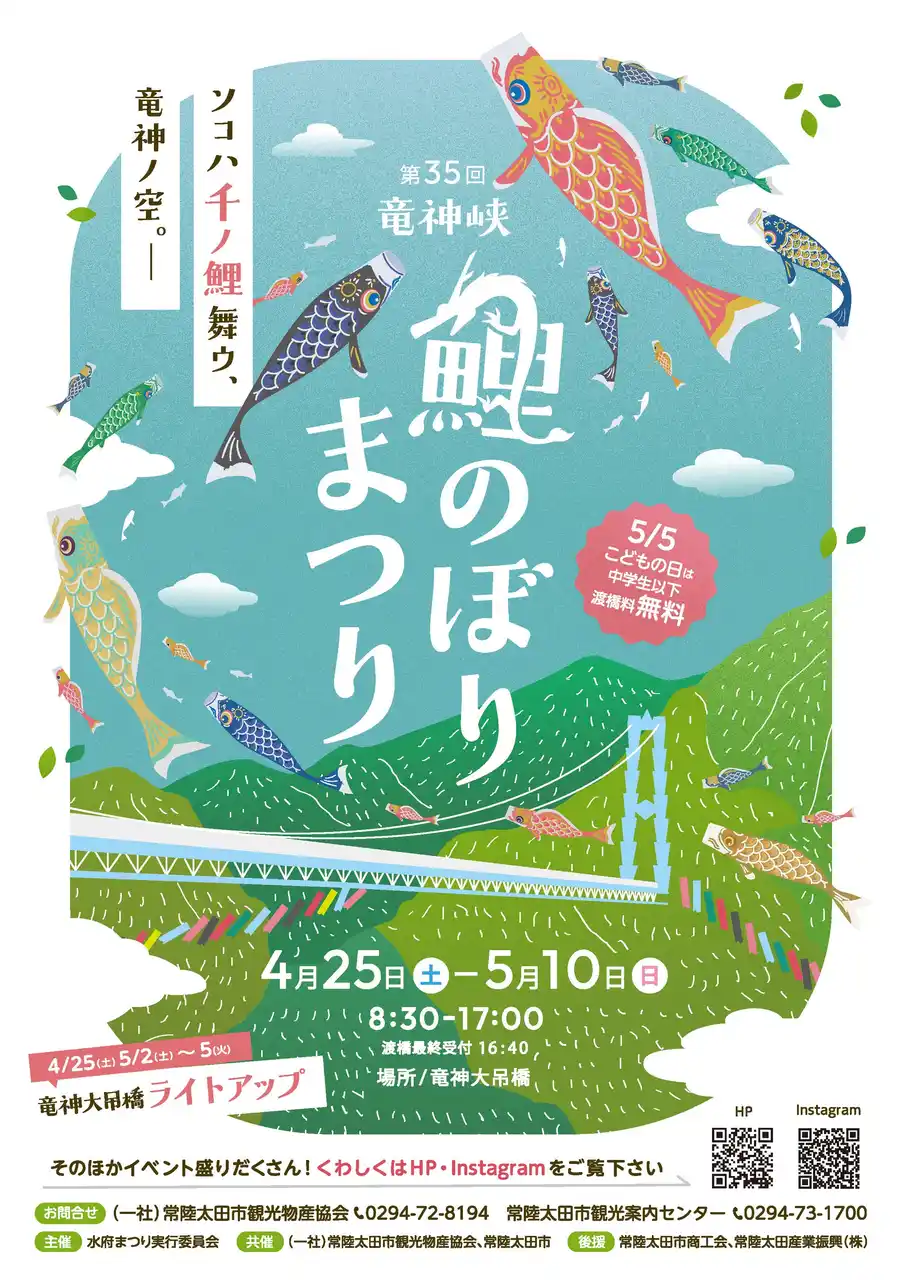 4月25日(土)から5月10日(日)まで開催。5月5日(火・祝)のこどもの日には、中学生以下の渡橋料が無料になります。GWはぜひ常陸太田市へお越しください!