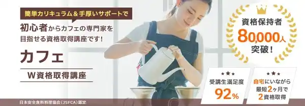 講座で学ぶ内容は日本安全食料料理協会の「コーヒーソムリエ」(https://www.asc-jp.com/drink/coffee/)、日本安全食料料理協会の「カフェオーナー経営士(R)」(https://www.asc-jp.com/drink/cafe/)それぞれの資格試験対策になっています。