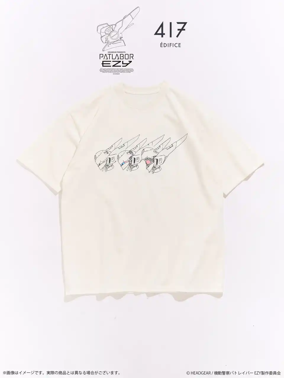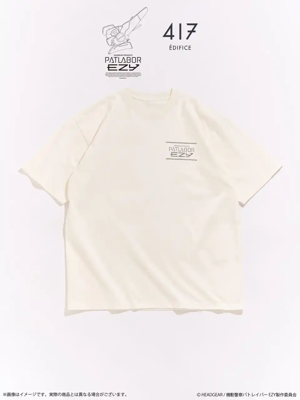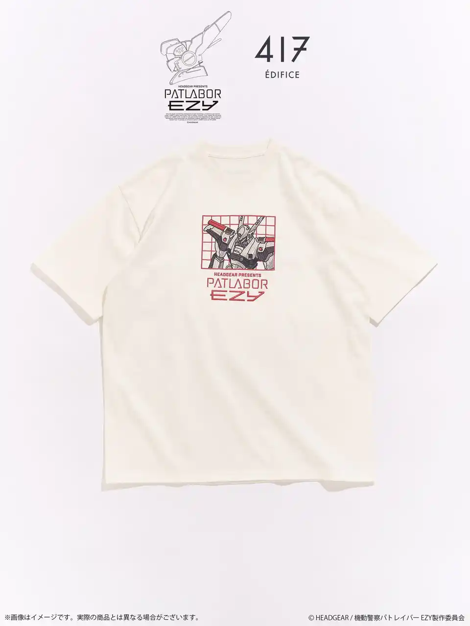 株式会社バンダイナムコフィルムワークス[代表取締役社長:河野 聡、住所:東京都杉並区]は、『機動警察パトレイバー EZY』劇場公開を記念して、「機動警察パトレイバー」シリーズと株式会社ベイクルーズが運営するアパレルブランド「417 EDIFICE」(フォーワンセブン エディフィス)とのコラボレーション商品を発売します。 |