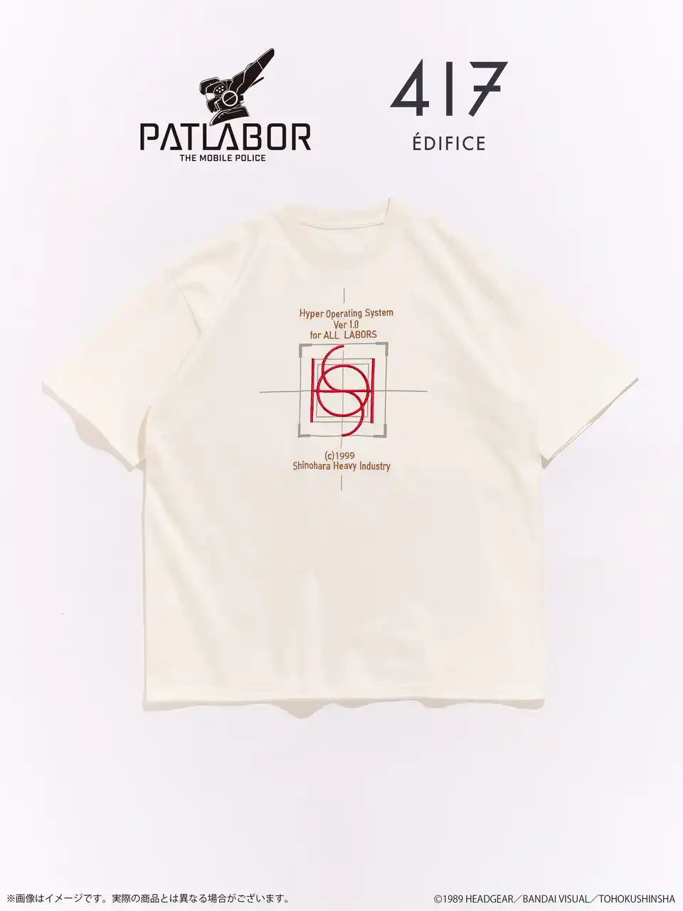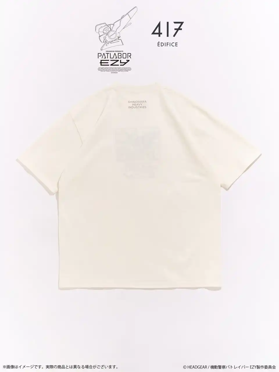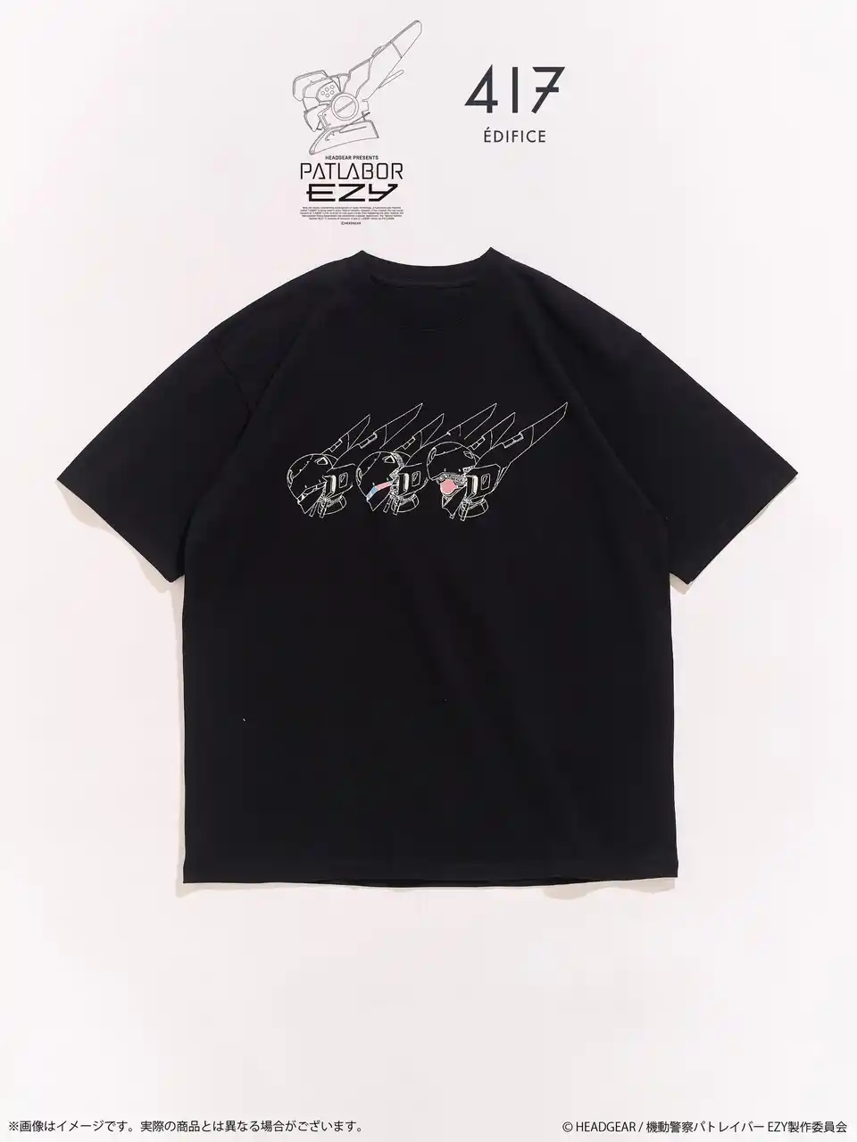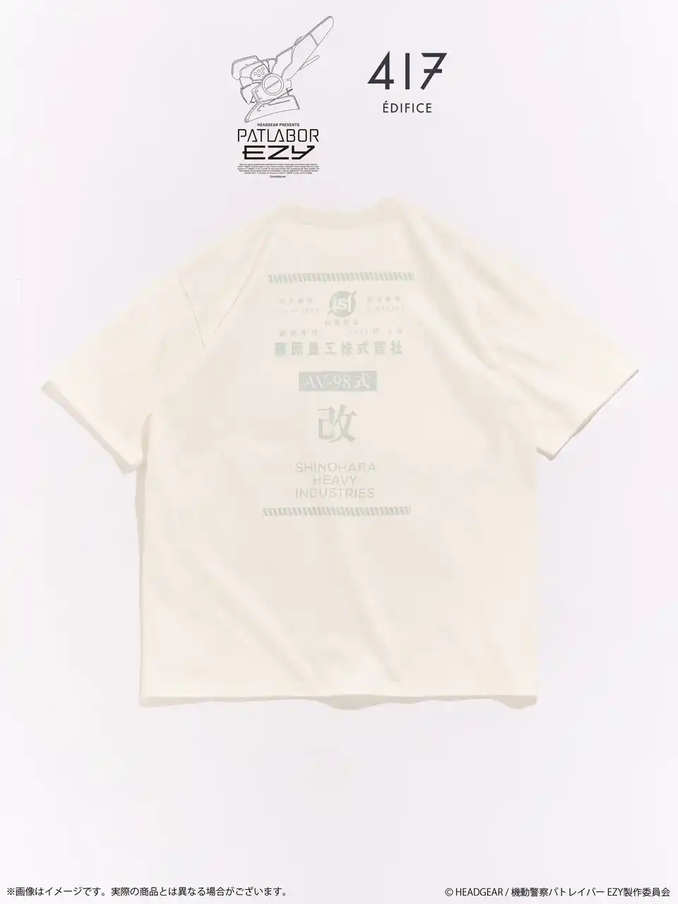 株式会社バンダイナムコフィルムワークス[代表取締役社長:河野 聡、住所:東京都杉並区]は、『機動警察パトレイバー EZY』劇場公開を記念して、「機動警察パトレイバー」シリーズと株式会社ベイクルーズが運営するアパレルブランド「417 EDIFICE」(フォーワンセブン エディフィス)とのコラボレーション商品を発売します。 |