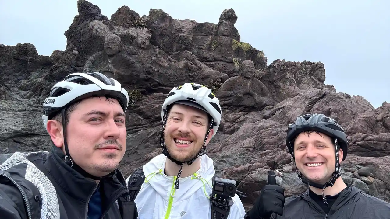 配信では、自転車旅ならではの自由度を活かして道中の名所にも寄り、地方の魅力を世界へ向けて発信しました。「勢至公園」(秋田県にかほ市)では、県内一の早咲きで知られる名所にて満開の桜を目にしたCDawgVAが「今まで見た景色の中でもトップ10に入る」と絶賛。視聴者からも「すごい」「こういう景色を見るために日本へ行きたい!」といった反響を呼びました。「十六羅漢岩」(山形県遊佐町)では、海岸の岩に彫られた仏像が並ぶ神秘的な景観に感銘を受け、ゲストのChris