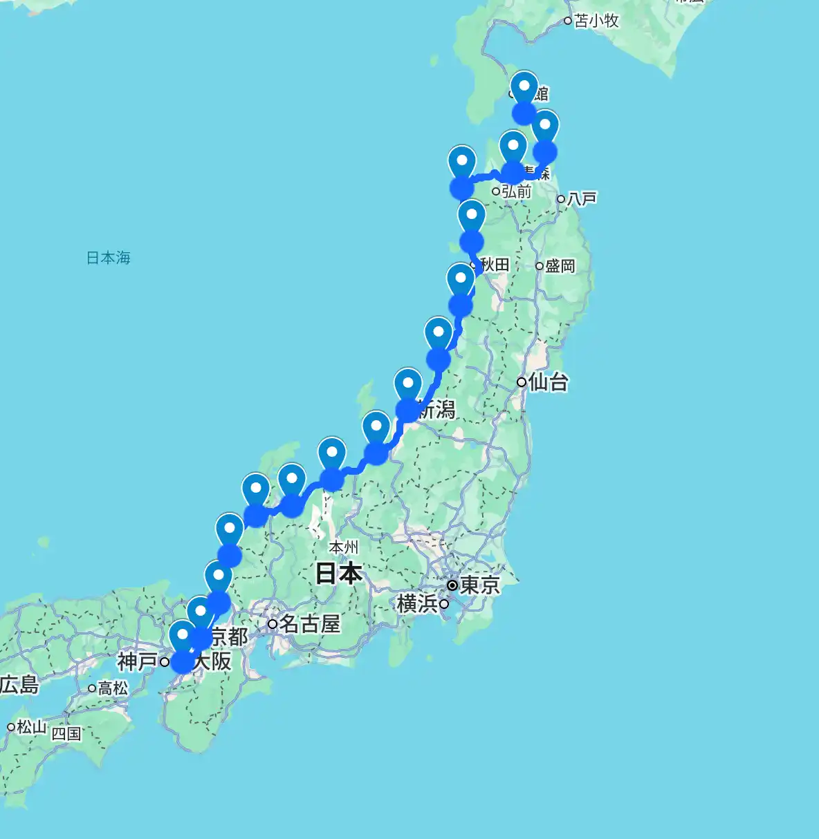 走行コース(青森県~大阪府) |
