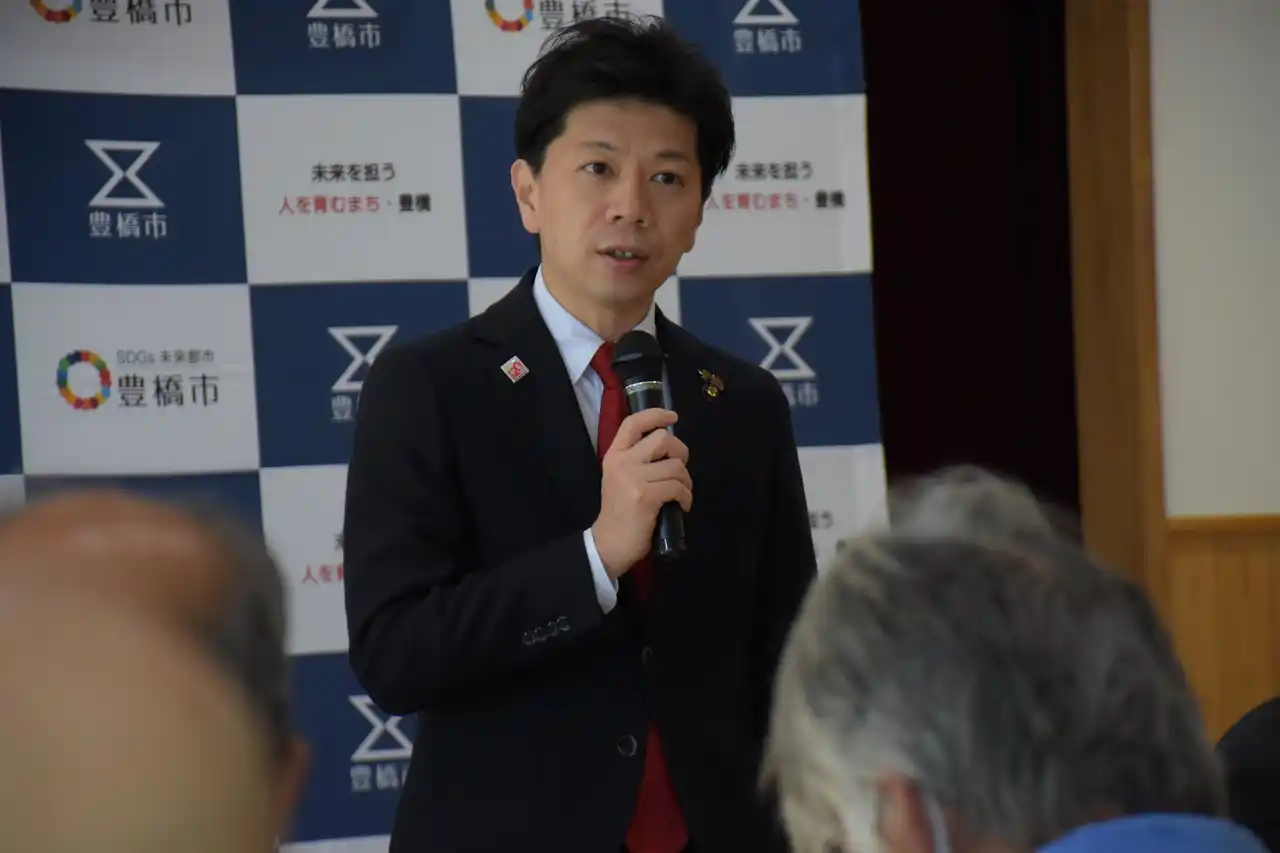 長坂市長は「スマートICをきっかけとしたまちづくりは、周辺地域の活性化はもちろんのこと、豊橋市にとっても非常に大きな効果をもたらします。今後も地域の皆さまと一緒になってまちづくりにまい進すると同時に、この地域の素晴らしい財産を守るため、乱開発の抑止に取り組んでまいります」とあいさつ。 |