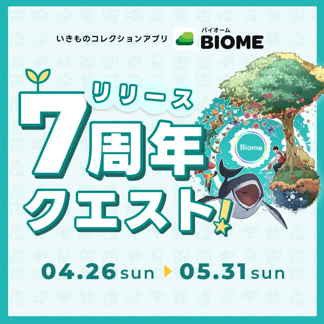 | 株式会社バイオーム(本社:京都府京都市、以下バイオーム)が開発・運営するいきものコレクションアプリBiome(バイオーム)は、2026年4月26日(日)をもって正式リリース7周年を迎えます。今後はさらに、インドネシアをはじめとした海外展開の本格化、生物多様性保全の取り組みをグローバルに拡張していきます。 | |||||||||||||