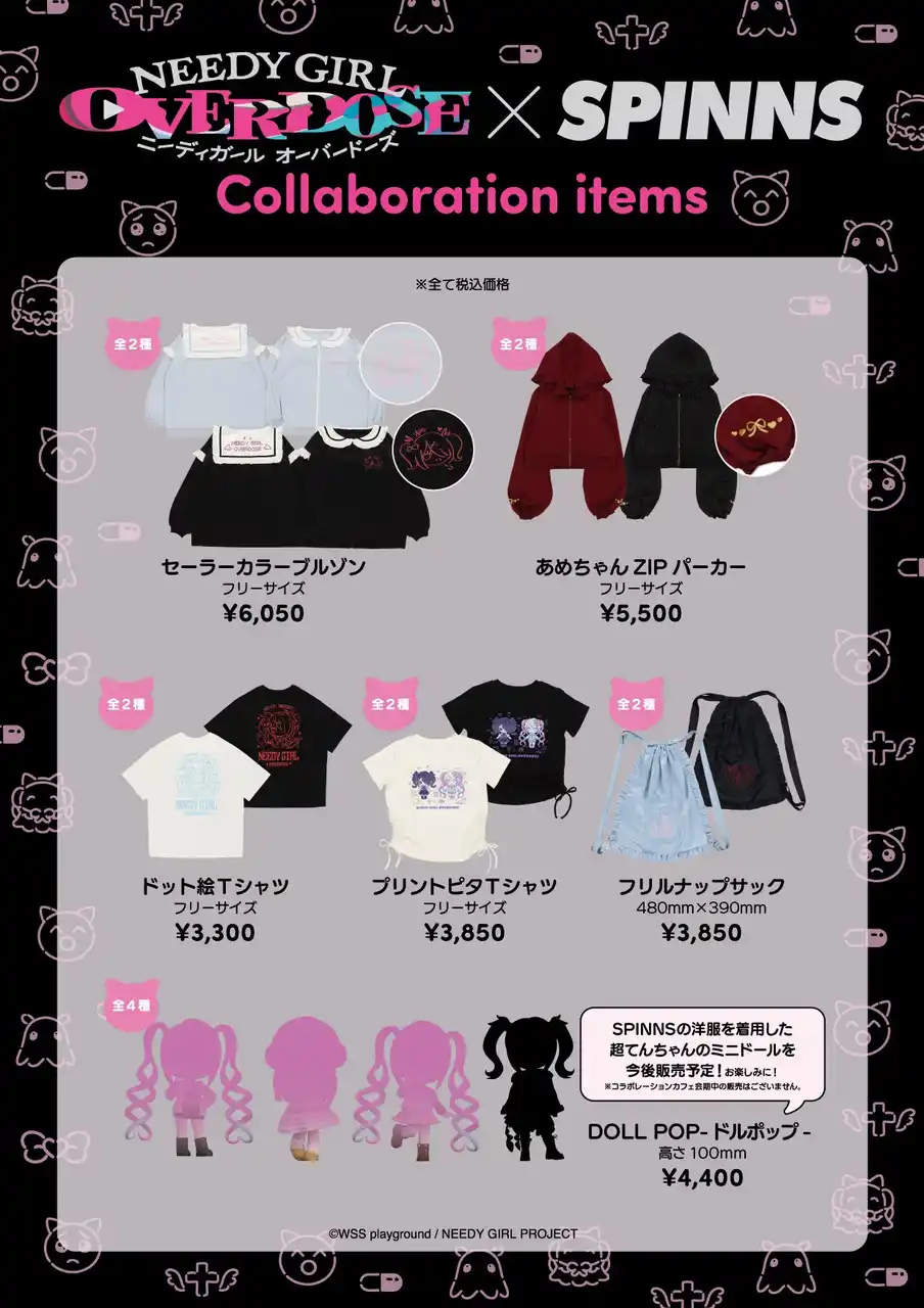 アパレル事業を展開する株式会社ヒューマンフォーラム(本社:京都市中京区 代表取締役会長:出路雅明)が運営するアパレルブランド「SPINNS」は、現在放送中のTVアニメ「NEEDY GIRL OVERDOSE」とのコラボレーションアイテムを発売いたします。 |