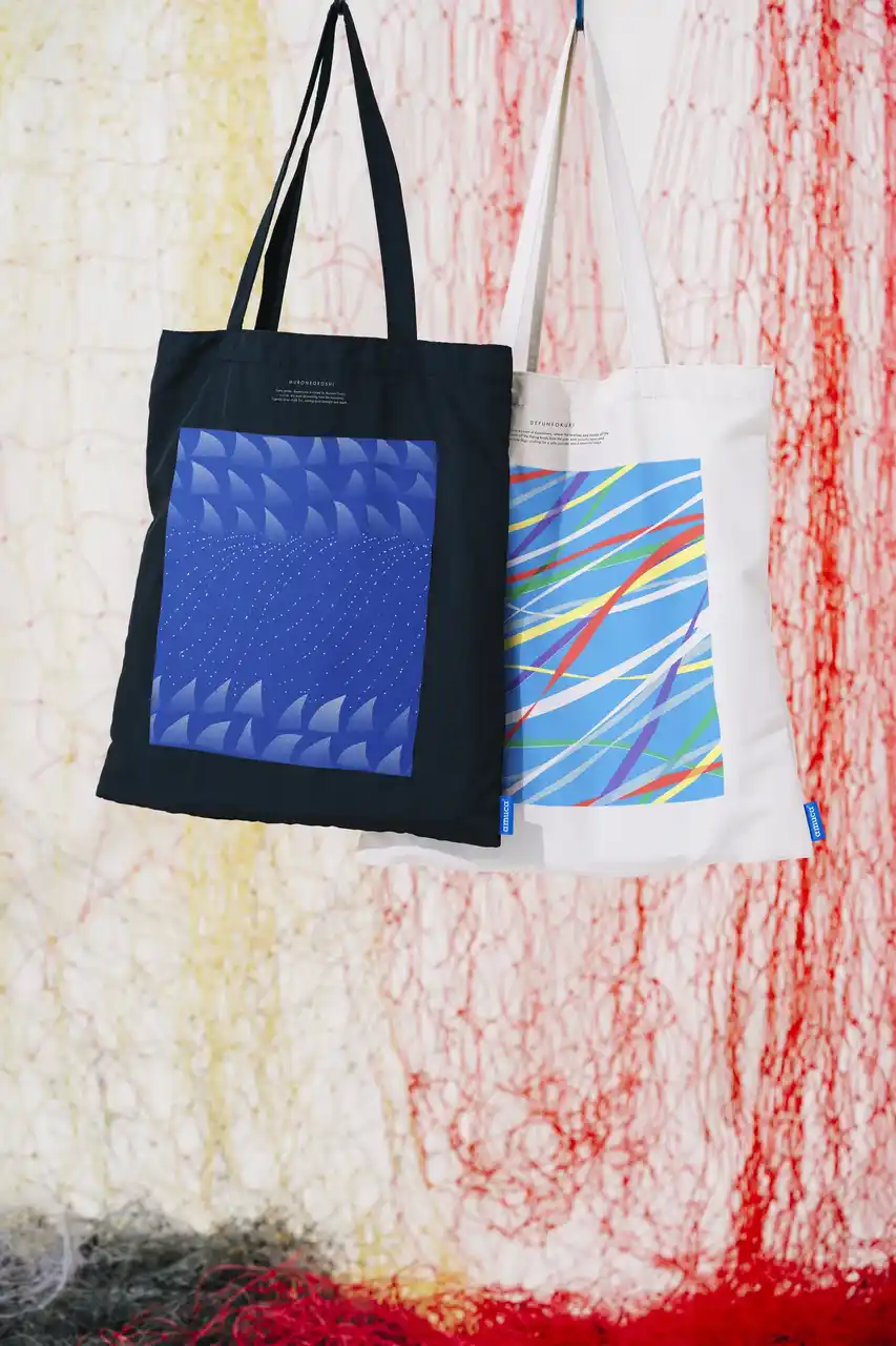 今回販売する「amuca(R)」製品は、amu創業の地である宮城県や、沖縄県などから回収した廃漁具が原料に使われています。一部の商品のデザインには気仙沼の文化をモチーフにした2種類のオリジナルテキスタイルデザインを採用しました。 |