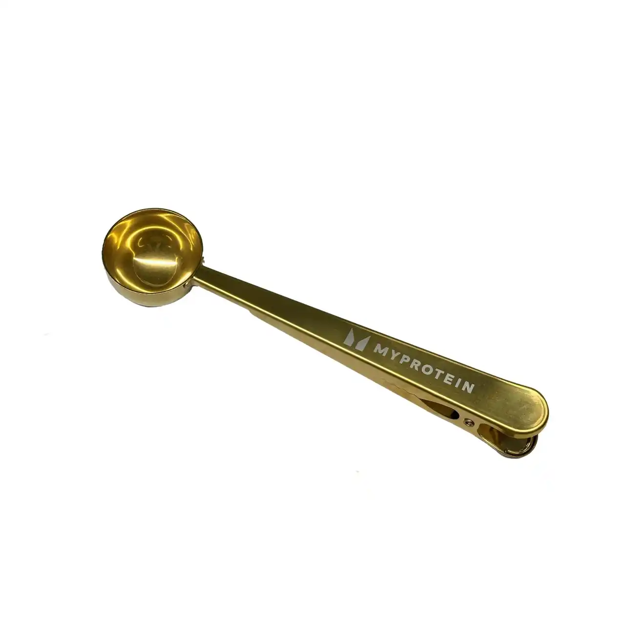 プロテインライフをもっと丁寧に、もっとスタイリッシュに。ゴールドクローム仕上げのステンレス鋼製スクープは、1杯7gをしっかりすくえる設計で、ワニ口クリップでそのまま袋を密封できる便利な2WAY仕様です。 |
