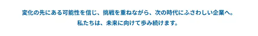 社会や働き方が大きく変化する今、企業に求められるものもまた、より複雑で多様になっています。私たちは、目の前の課題に応えるだけでなく、その先にあるお客様の成長、地域の発展、そして新しい時代に合った働き方まで見据えながら、未来に向けた挑戦を続けていきます。 |